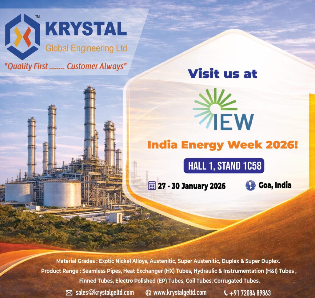 Join Krystal Global Engineering Limited at Indian Energy Week 2026, where innovation meets sustainability. Discover our advanced stainless steel and alloy solutions powering the future of energy, oil & gas, and process industries. Connect with our team to learn how Krystal’s engineering excellence is driving efficiency, reliability, and a cleaner energy future.