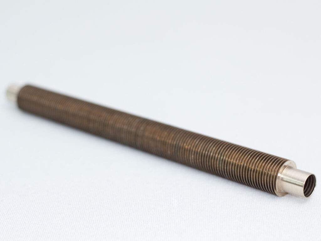 The knurled fin is characterized by the knurled surface on the foot of the L- ype or LL-type finning. The knurling on both the base tube and the foot increases the surface area and bonding of the fin to the base tube..